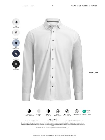 Ein Hochleistungshemd, hergestellt aus einem gemischten Twill aus bevorzugten Materialien mit zusätzlicher Easy Care-Behandlung und modernen Kontrast-