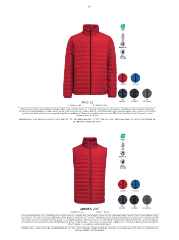 OBERMATERIAL : 100% RECYCLING-POLYESTER 82 G/M . FUTTER : 100% RECYCLING-POLYESTER 37 G/M 2 . FÜLLUNG : RECYCLING-QUALITÄT. OEKO-TEX STANDARD 100.