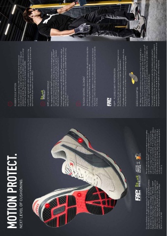 2 The new definition of the sportinspired performance safety shoe line MOTION PROTECT is the perfect symbiosis of cushioning, energy return and design. A new feature is the sole construction with the innovative IMPULSE.FOAM ® midsole with anti-fatigue technology for work without tiredness. Due to this new material, the wearer feels the highly comfortable shock-absorptio