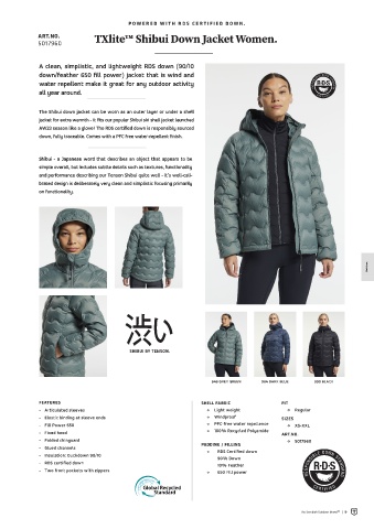 TXlite™ Shibui Down Jacket Men.  ART.NO.   TXlite™ Shibui Down Jacket Women.