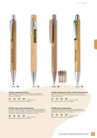 LT87289 | Kugelschreiber Bambus LT87284 | Kugelschreiber Bambus mit Weizenstroh Elementen
