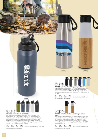 LT98886 | Thermoflasche Clark 800ml                       LT98857 | Isolierflasche Bambus mit Trageschlaufe