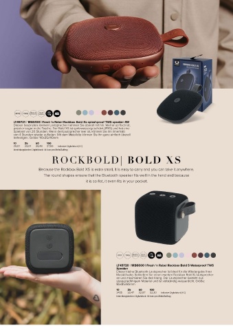 passt er sogar in die Tasche. Der Bold XS ist spritzwassergeschützt (IPX5) und hat eine